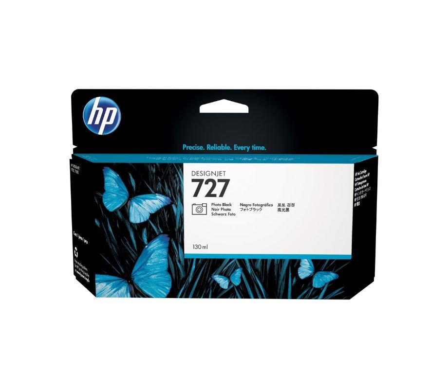 Cartouche HP 727 Noir Photo (B3P23A), 130 ml, encre teintée pour impression jet d’encre thermique HP. Qualité professionnelle et durable, poids 0,21 kg.