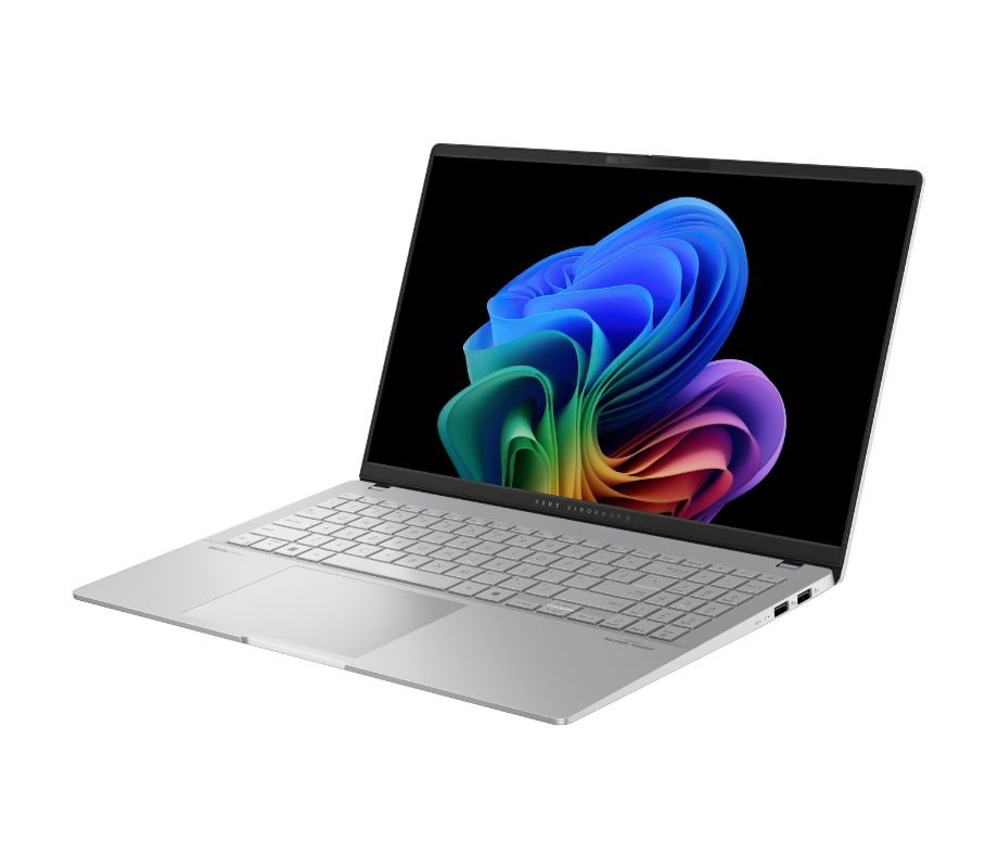 PC portable Asus Vivobook S15 S5507QA avec Snapdragon X Plus, 16 Go RAM, SSD 1 To, écran 15,6″ 3K OLED 120 Hz, Windows 11 Home et clavier AZERTY rétroéclairé.