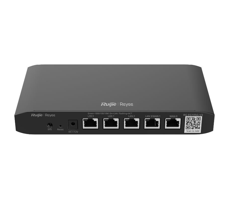 Le Ruijie Reyee RG-EG105G V3 est un routeur professionnel Gigabit compatible Cloud, conçu pour les petites entreprises, commerces, écoles ou bureaux recherchant une connexion stable, sécurisée et facile à gérer. Grâce à sa gestion centralisée via Ruijie Cloud, il permet une configuration et un contrôle à distance simples et efficaces.