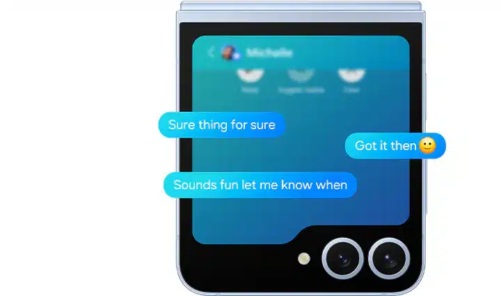 Le Samsung Galaxy Z Flip 6 est doté d’un appareil photo principal de 12 MP (ouverture f/1.8) avec un capteur ultra-large de 12 MP, offrant de superbes photos, même dans des conditions de faible luminosité. Le mode Selfie est également optimisé grâce à l’écran extérieur, vous permettant de prendre des selfies de haute qualité sans ouvrir le smartphone.