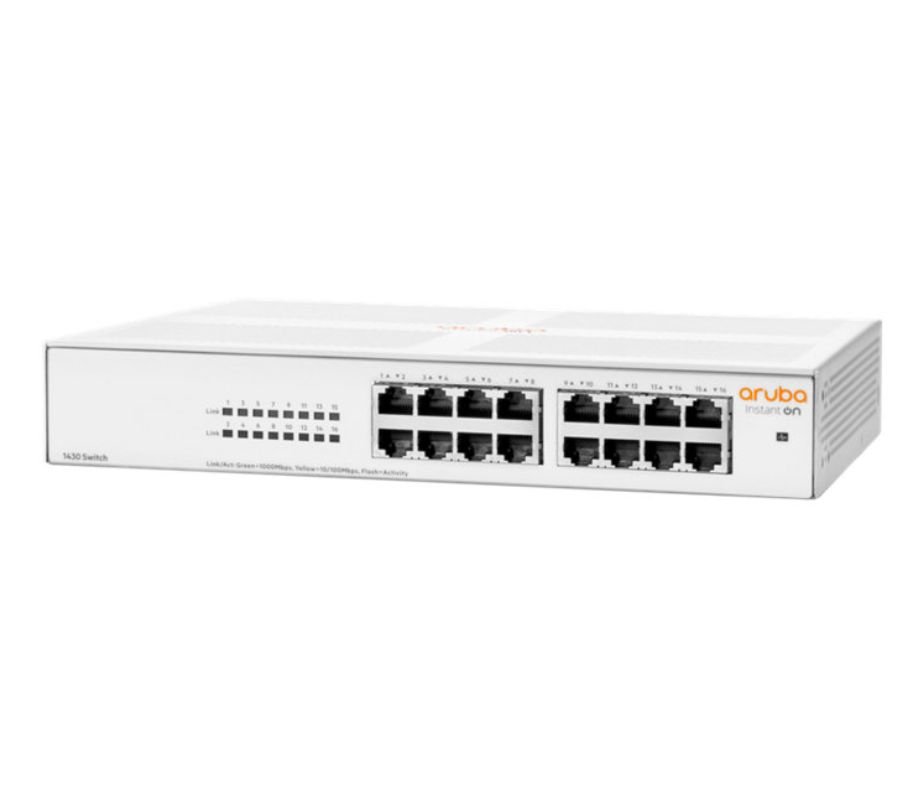 Le commutateur Aruba Instant On 1430 16G est une solution de connectivité réseau non gérée, idéale pour les petites entreprises et le télétravail. Facile d’utilisation, il offre 16 ports RJ-45 10/100/1000 et un débit de 23,80 Mbit/s. Avec une capacité de basculement de 32 Gbit/s et une taille de tampon de paquets de 2,0 Mo, il garantit une performance optimale. Ne nécessitant aucune configuration complexe, ce commutateur est prêt à l’emploi et consomme peu d’énergie, avec une consommation maximale de 7,9 W et 2,3 W en inactif.